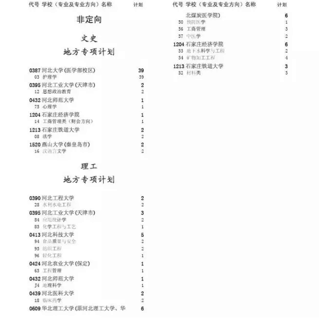 二、地方專項(xiàng)計(jì)劃,是河北省屬高校面向農(nóng)村考生招生的專項(xiàng)計(jì)劃,只招農(nóng)村戶籍或戶籍在我省縣(含縣級(jí)市)及以下地區(qū)的考生,計(jì)劃性質(zhì)為“非定向”,批次為“地方專項(xiàng)計(jì)劃”。地方專項(xiàng)計(jì)劃二志愿錄取工作在本科一批二志愿錄取結(jié)束后進(jìn)行。符合條件的考生,既可填報(bào)本科一批二志愿,也可填報(bào)地方專項(xiàng)計(jì)劃二志愿。