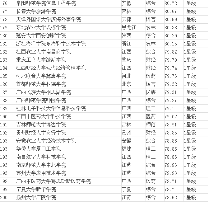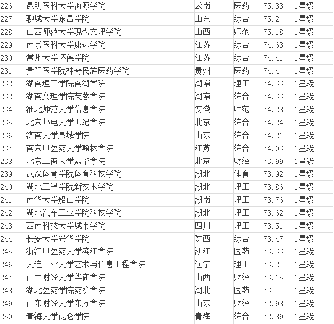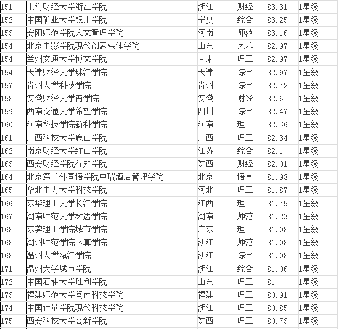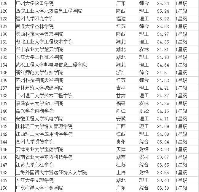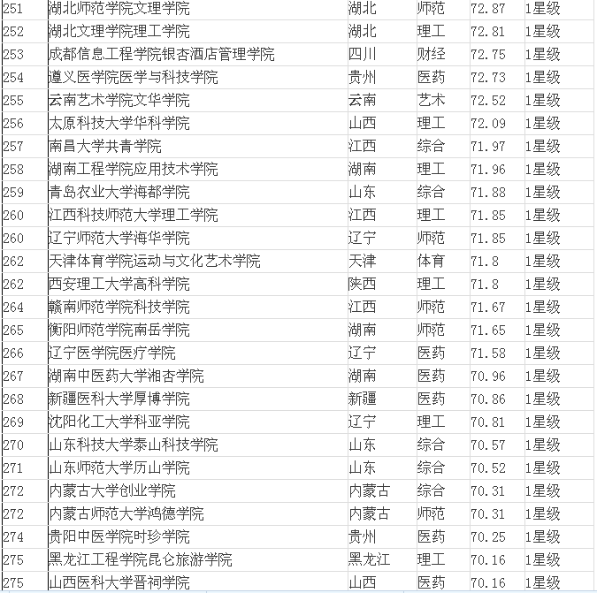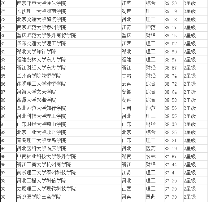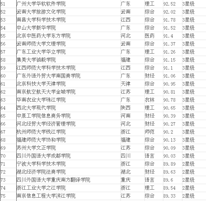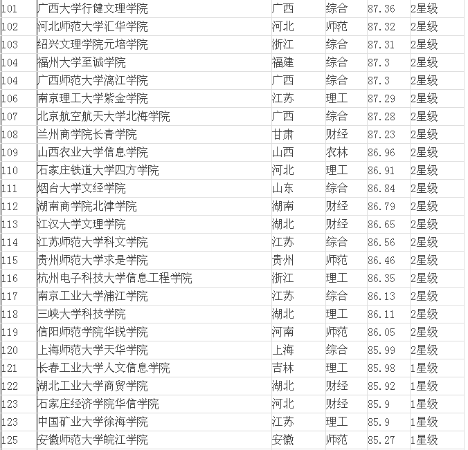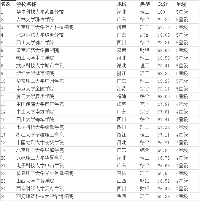 2015年全國(guó)三本院校排名表(獨(dú)立學(xué)院)