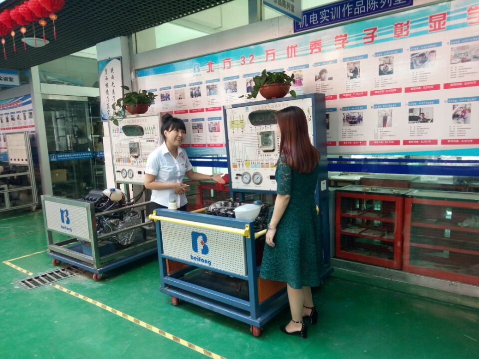 首先來(lái)到的就是邯鄲北方汽修學(xué)校的機(jī)電實(shí)訓(xùn)室,這里的老師為孟老師介紹了相關(guān)設(shè)備,以及該實(shí)訓(xùn)室的基本結(jié)構(gòu)和學(xué)生學(xué)習(xí)情況。實(shí)訓(xùn)室的墻上整 齊地排列著學(xué)生們的機(jī)電實(shí)訓(xùn)作品,大家用完美的作品來(lái)展現(xiàn)邯鄲北方汽車(chē)專(zhuān)修學(xué)校強(qiáng)大的課程體系!