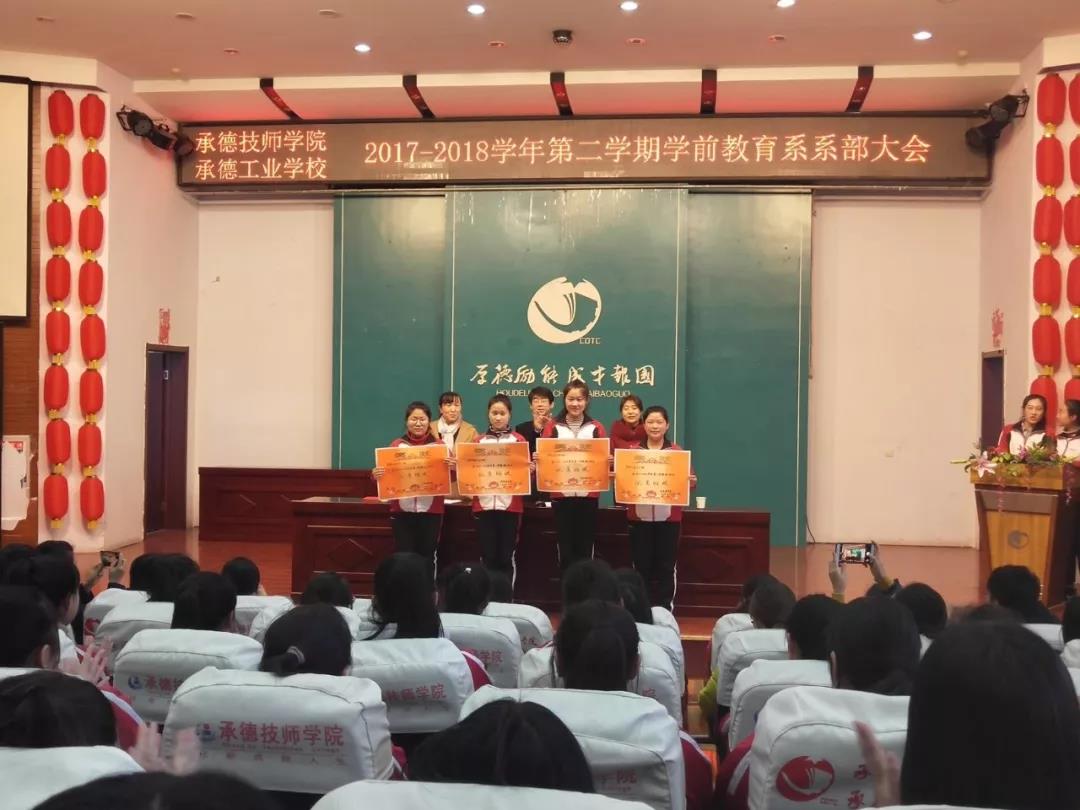 2018年3月15日下午,學(xué)前教育系全體師生在承德技師學(xué)院報(bào)告廳召開(kāi)新學(xué)期系部大會(huì)暨師生表彰大會(huì)。會(huì)議中楊春輝主任、張海燕書(shū)記和楊蒼芝主任分別從各個(gè)方面對(duì)新學(xué)期的工作進(jìn)行了部署和動(dòng)員,也在會(huì)議中對(duì)上一學(xué)期中成績(jī)優(yōu)異的學(xué)生和工作認(rèn)真出色的教師進(jìn)行了表彰。