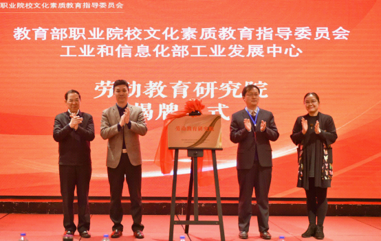 工業(yè)和信息化部工業(yè)文化發(fā)展中心副主任、教育部職業(yè)院校文化素質(zhì)教育指導(dǎo)委員會(huì)副主任孫星宣讀《關(guān)于聯(lián)合成立教育研究院的決定》《關(guān)于公布勞動(dòng)教育研究中心成員單位的決定》。