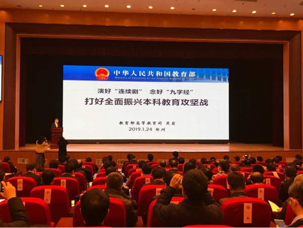 “2018年,開啟了中國本科教育的新時代;2019年,中國高等教育更要超前識變、積極應變、主動求變!痹谌涨芭e行的全國高教處長會上,教育部高等教育司司長吳巖作了題為《演好“連續(xù)劇” 念好“九字經(jīng)” 打好全面振興本科教育攻堅戰(zhàn)》的主題報告,他表示,“2019年要努力建設(shè)以質(zhì)量文化為核心的高等教育奮進文化,續(xù)寫中國本科教育的“十新”面貌”。