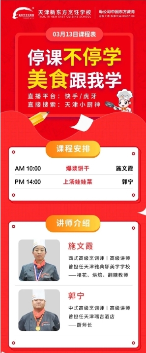 天津新東方烹飪學(xué)校線上直播課堂開啟啦!