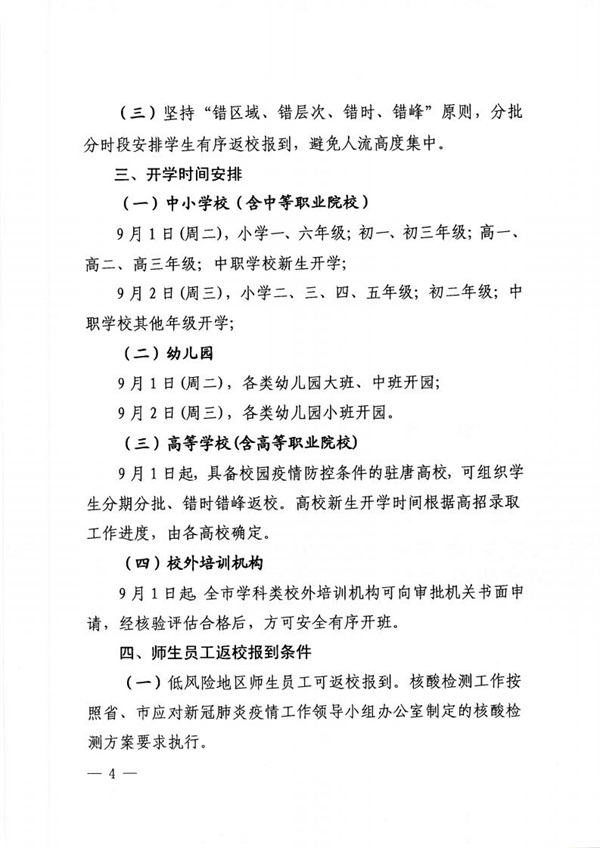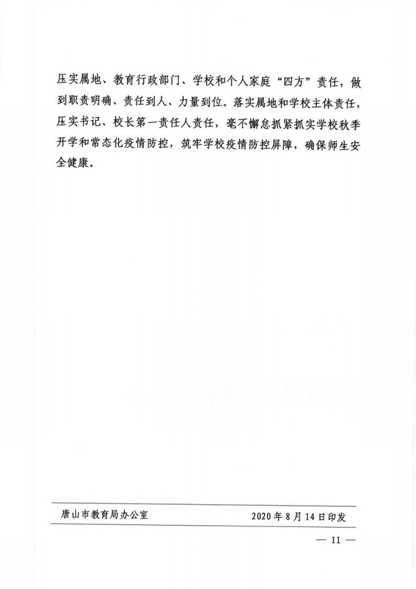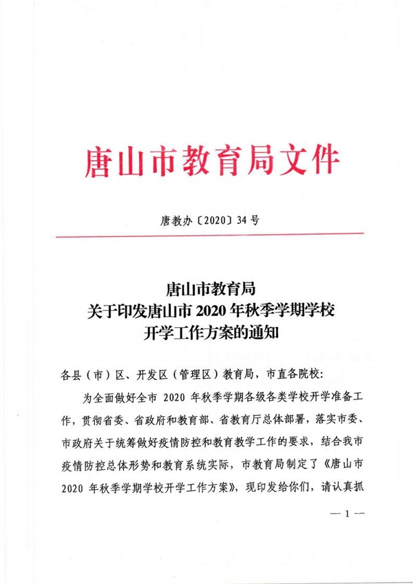 唐山市教育局印發(fā)唐山市2020年秋季學期學校開學工作方案的通知