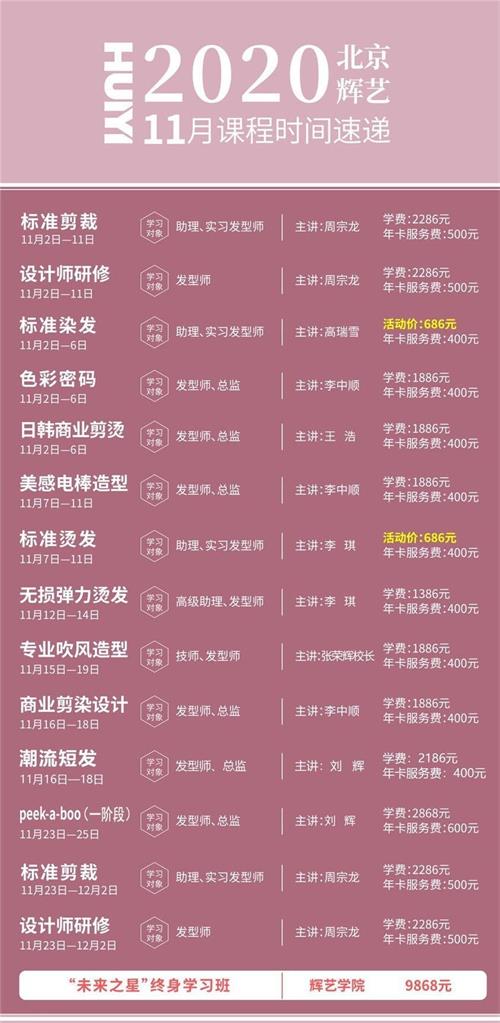 北京輝藝美容美發(fā)學(xué)校(北京美容美發(fā)學(xué)校)11月課程簡介: