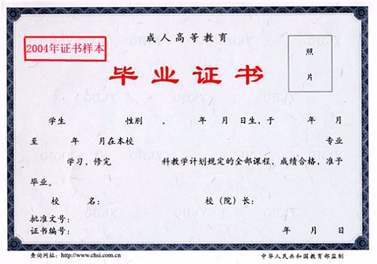 成人高等教育畢業(yè)證書(shū)樣式