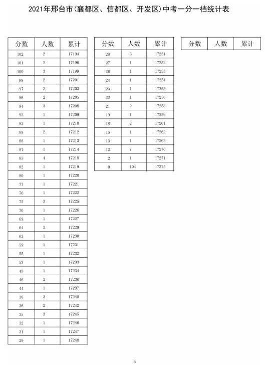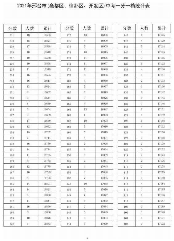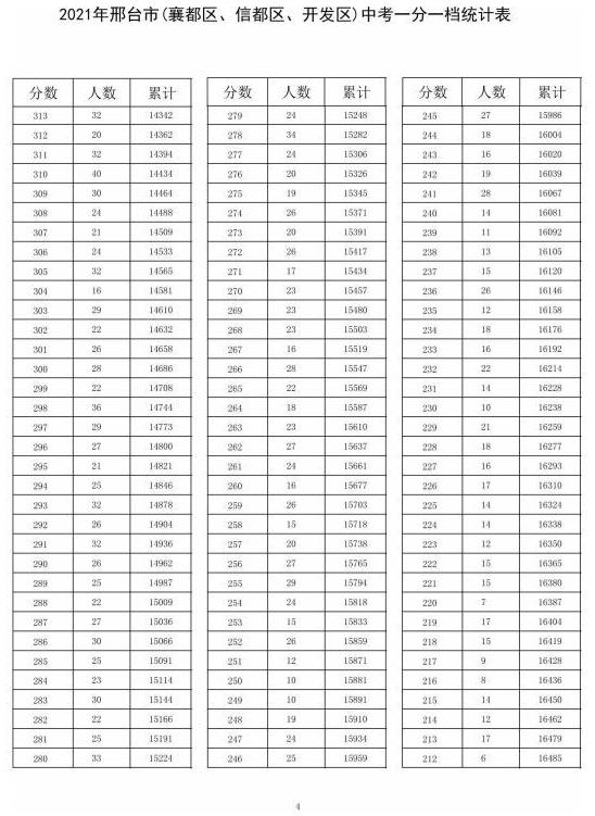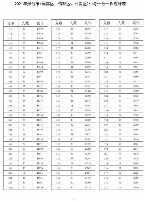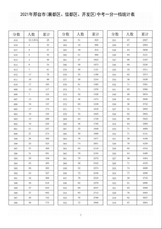 2021年中考邢臺市(襄都、信都、開發(fā)區(qū))一分一檔統(tǒng)計表↓↓↓