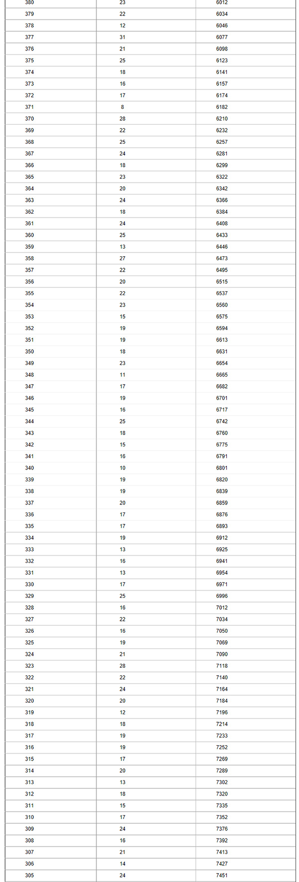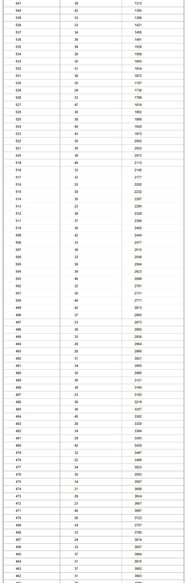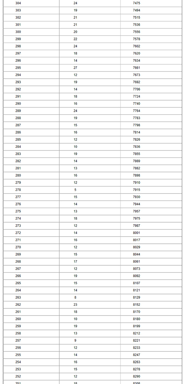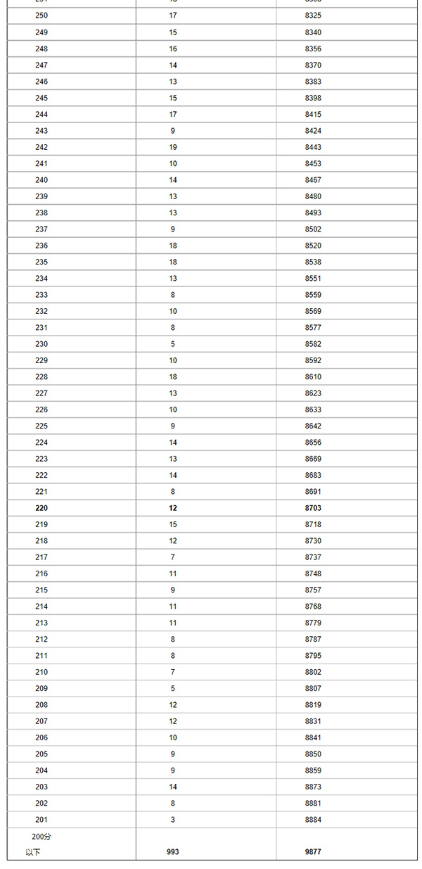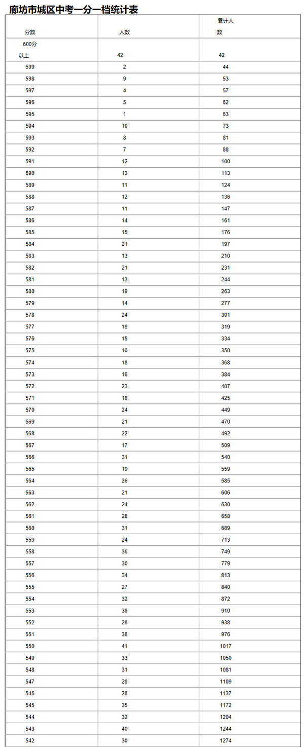 廊坊市城區(qū)中考一分一檔統(tǒng)計(jì)表