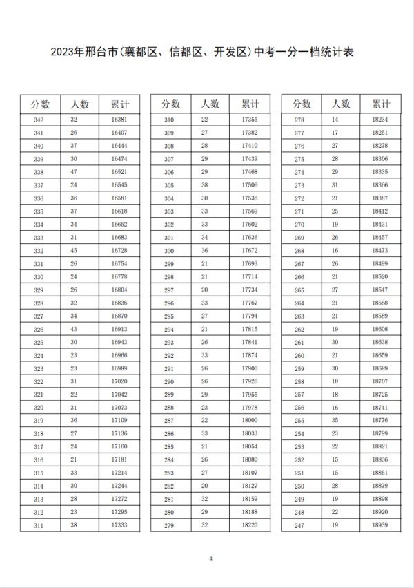 2023年邢臺中考一分一檔表公布
