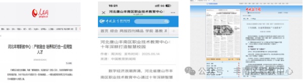 近日,人民網(wǎng)河北頻道、中國教育新聞網(wǎng)、中國教育報集中報道了豐南職教中心在產(chǎn)教融合與智慧校園建設方面的三個典型案例:《產(chǎn)教融合培養(yǎng)知行合一應用人才》《十年深耕打造數(shù)字校園》及《十年深耕,打造智慧校園“豐南樣本”》。此次集中報道,是對我校在職業(yè)教育領域銳意創(chuàng)新、深耕實踐、服務發(fā)展所取得突出成績的充分肯定!多家重量級媒體的聚焦,不僅彰顯了我校辦學特色和育人成效在全國范圍內(nèi)產(chǎn)生的積極影響,也極大提升了我校的社會聲譽和品牌影響力。