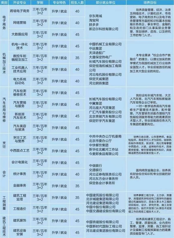 保定市科技中等專業(yè)學(xué)校招生類別: