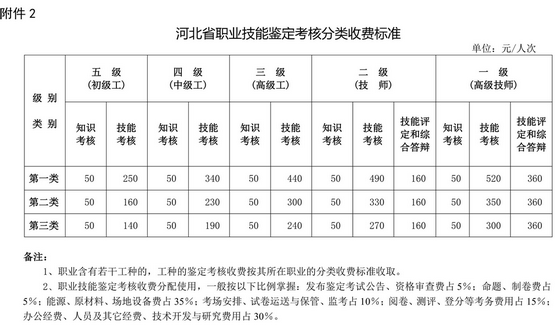 2、河北省職業(yè)技能鑒定考核分類收費(fèi)標(biāo)準(zhǔn)