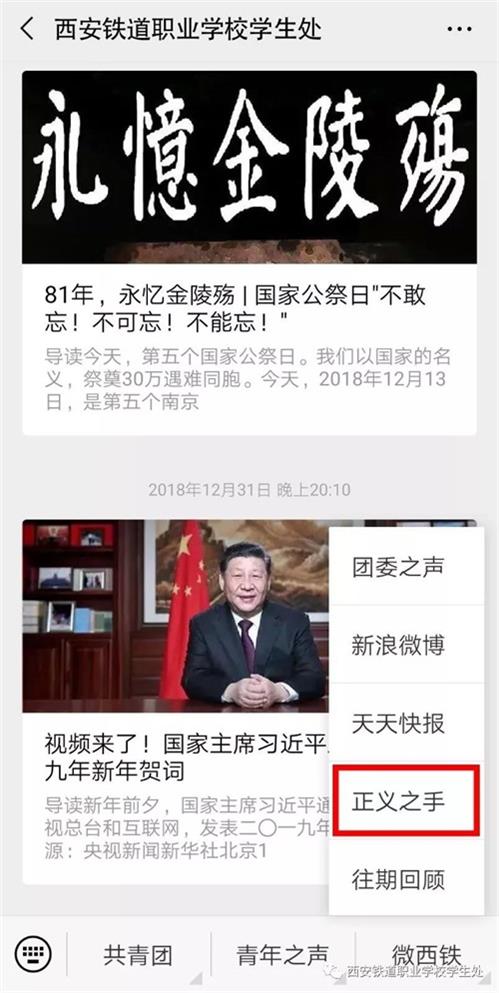 另外西安鐵道職業(yè)學校學生處公眾號上有“正義之手”投訴、求助板塊,當看到其他同學吵架、發(fā)生矛盾時,任何人可以及時在正義之手發(fā)布,老師也能夠第一時間趕到現(xiàn)場處理。當自己認為老師對自己有不公正的待遇時,同學和老師有矛盾,應當及時找年級主任匯報情況,或可以給專門郵箱發(fā)送訴求,由校領導處理解決。