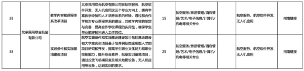 在百度中搜索“教育部協(xié)同育人”可進(jìn)入教育部協(xié)同育人網(wǎng)址http://www.moe.gov.cn/s78/A08/A08_gggs/A08_sjhj/201805/t20180503_334906.html,在該網(wǎng)頁(yè)中下載附件(2018年第一批產(chǎn)學(xué)合作協(xié)同育人項(xiàng)目簡(jiǎn)介)文件后,可在教育部此文件中第38名企業(yè)位置查找到“北京民用聯(lián)合航空有限公司”的審批項(xiàng)目(航空領(lǐng)域排名第二)。同時(shí)在此鄭重提醒各位考生及家長(zhǎng),在教育部該網(wǎng)頁(yè)查詢不到的校企合作企業(yè)方,均屬于“未參加項(xiàng)目審批企業(yè)”或“未能通過審批項(xiàng)目”,此類項(xiàng)目望考生及家長(zhǎng)慎重報(bào)考。