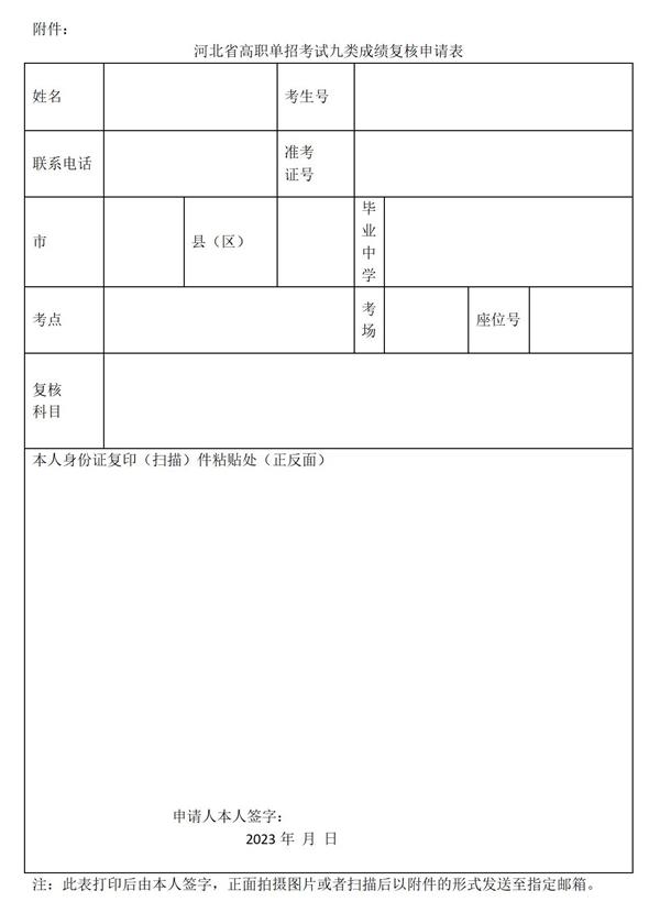考生如對本人成績有異議,可于4月14日17時前將書面復(fù)核申請表(附件)及準(zhǔn)考證拍照或掃描后以附件的形式發(fā)送至電子郵箱(qinduidui@foxmail.com),郵件標(biāo)題為“姓名+復(fù)核申請”,也可本人持準(zhǔn)考證、身份證到河北對外經(jīng)貿(mào)職業(yè)學(xué)院當(dāng)面提交申請。逾期不再受理。