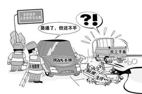 隨著市場(chǎng)經(jīng)濟(jì)的進(jìn)一步推進(jìn),首當(dāng)其沖的是農(nóng)民工子女在城里上學(xué)“難”這個(gè)特大型包袱難解。對(duì)此,一些當(dāng)?shù)卣欠駮?huì)為其接受義務(wù)教育提供平等的條件?這本是一個(gè)難中之難的問(wèn)題。前不久,我再次讀了那一篇《我的課桌在哪里?》的長(zhǎng)篇報(bào)告文學(xué),再次陷入深深地思索。該文翔實(shí)講述了在京城的三四十萬(wàn)打工子弟和他們的生存狀態(tài)以及他們對(duì)平等教育的渴望的窘迫現(xiàn)實(shí),催人淚下!有資料表明,在北京,已有超過(guò)60%的進(jìn)城務(wù)工人員子女在公辦學(xué)校求學(xué),但是,他們?cè)诒本┑纳龑W(xué)問(wèn)題,卻成了繼續(xù)求學(xué)的攔路虎。試想,中國(guó)的皇城腳下,首善之區(qū)尚且如此,那么其他地方的情況可想而知了。